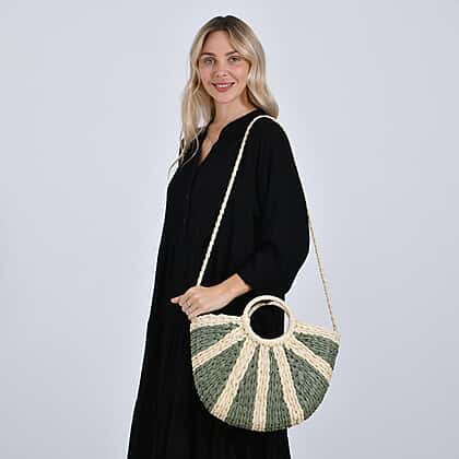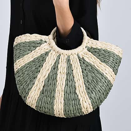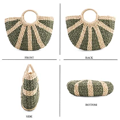 Retro Semi-circle Stripe Straw Beach Handbag - Green