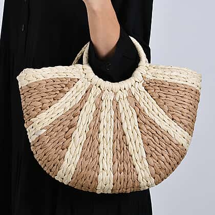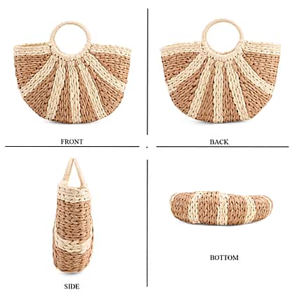 Retro Semi-circle Stripe Straw Beach Handbag - Khaki