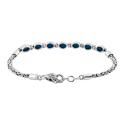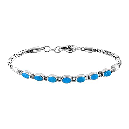 Royal Bali Collection Mega Closeout - Sleeping Beauty Turquoise Borobudur Bracelet (Size - 7.5) Sterling Silver Wt. 11.10
