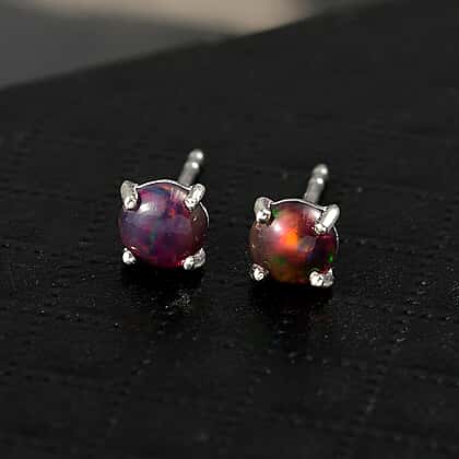 Sable Dyed Ethiopian Opal Earring with Push Back in Sterling Silver