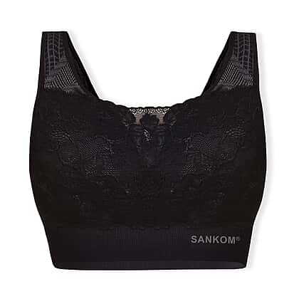 Sankom Switzerland Patent Classic Bra With Lace (Size XXXL) - Black