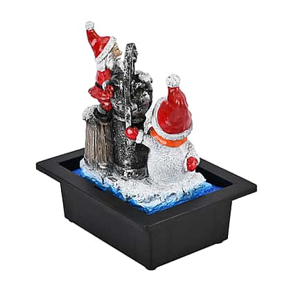 Santa Claus & Snowman Indoor Water Fountain with Multicolour LED Lights (USB Powered) - White, Blue & Red