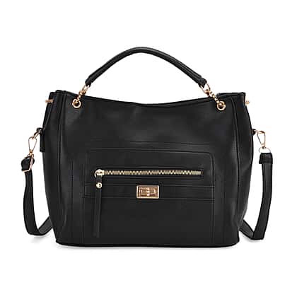 Satchel Handbag with Detachable Shoulder Strap - Black