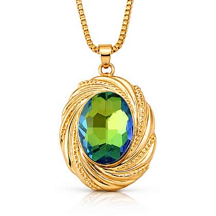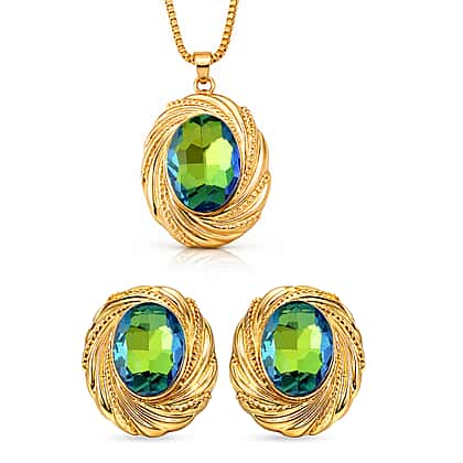 Set of 2 - Green Magic Color Crystal Necklace (Size - 20-2 Ext) & Earring with Push Back in Yellow Gold Tone