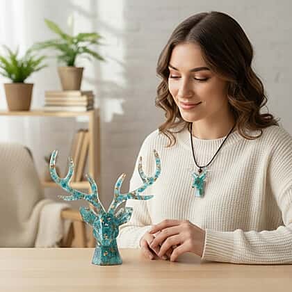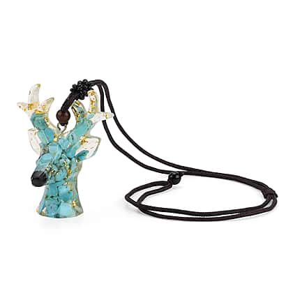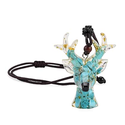 Set Of 2 - Turquoise Reindeer Christmas Decor & Amber Deer Head Necklace (Size 28 Adjustable) - Light Blue