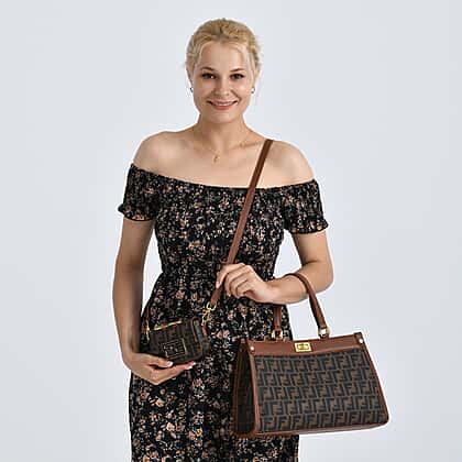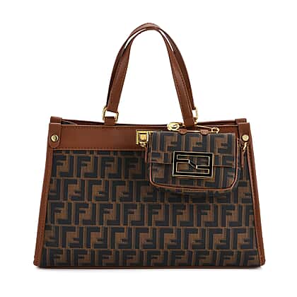 Set of 2 Monogram Tote Bag with Small Matching Bag - Tan & Black