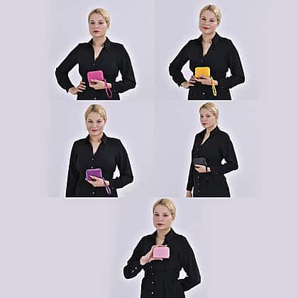 Set of 5 Solid Color Card Holders with Wrist Strap - Black, Purple, Rose Pink, Pink & Yellow