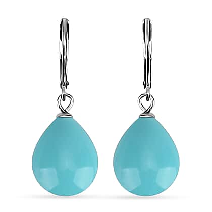 Set of Sleeping Beauty Color Shell Pearl Pendant with Chain (Size 20) & Blue Shell Pearl Drop Earring in Silber Tone