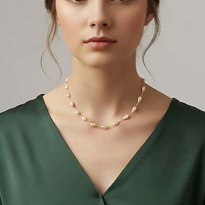 Golden Shell Pearl Necklace (Size 28 - 2 Ext) in Yellow Gold Plated