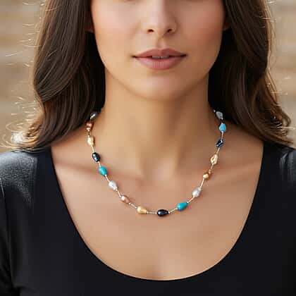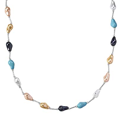 Multi Colour Shell Pearl Necklace (Size 28 - 2 Ext) with Lobster Clasp