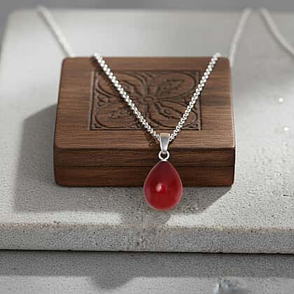 Red Shell Pearl Pendant with Chain (Size 20) in Silver Tone 12.00 Ct.