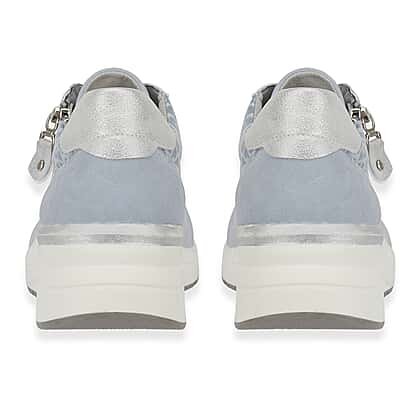 Step into modern comfort with the shoreditch womens metallic wedge lace up sneakers with side zip in blue. Designed to offer a subtle lift, these sneakers feature a hidden wedge sole that enhances height while maintaining everyday ease. Soft blue tones combined with metallic detailing create a fresh and contemporary look. Perforated panels add texture and visual appeal, while lace up fastening ensures a secure fit. Side zip closure allows for quick and convenient wear. Perfect for pairing with jeans, dresses or relaxed tailoring, these sneakers bring effortless style to daily outfits.