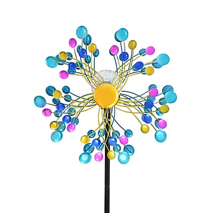 Add a striking burst of colour and movement to your outdoor space with this blue and multi colour garden showpiece, designed to create a visually engaging display from every angle. The radial structure features multiple extended elements tipped with vibrant accents, forming a balanced composition that rotates smoothly with the breeze. As it moves, the colours shift and catch the light, creating a dynamic interplay of motion and reflection. Supported by a sturdy stake, it can be positioned easily along pathways, lawns or garden borders. The integrated light feature casts a soft glow as evening sets in, enhancing its decorative presence beyond daylight hours.