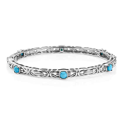 Sleeping Beauty Turquoise Full Bangle in Rhodium Overlay Sterling Silver 1.80 ct, Silver Wt. 17.5 Gms 2.076 Ct.