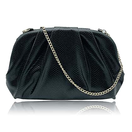 Soft Cloud Pouch Clutch Bag with Shoulder Chain Strap (115 Cm) - Black