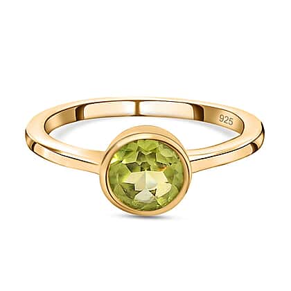 Add a hint of sophistication with this peridot solitaire ring. Featuring a stunning round-cut peridot, this ring showcases the vibrant green hues that the peridot is known for. The gemstone is beautifully set in 18K vermeil yellow gold plated sterling silver, providing both durability and a luxurious appearance. Perfect for any occasion, this ring symbolises strength and renewal, making it a meaningful addition to your jewellery collection. Peridot, the birthstone for August, adds a special significance, making it an ideal gift for those born this month.