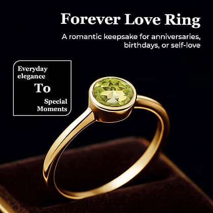 Add a hint of sophistication with this peridot solitaire ring. Featuring a stunning round-cut peridot, this ring showcases the vibrant green hues that the peridot is known for. The gemstone is beautifully set in 18K vermeil yellow gold plated sterling silver, providing both durability and a luxurious appearance. Perfect for any occasion, this ring symbolises strength and renewal, making it a meaningful addition to your jewellery collection. Peridot, the birthstone for August, adds a special significance, making it an ideal gift for those born this month.