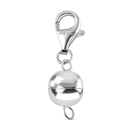 10 mm Round Magnetic Lock with 11 mm Lobster Clasp in Rhodium Overlay Sterling Silver