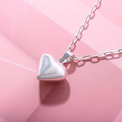 This gorgeous necklace adds a lovely twist to the classic paperclip chain with a dainty silver heart pendant added to the design. The Platinum Overlay Sterling Silver Heart Necklace is a charming everyday accessory that will complement a variety of looks. Measuring 20 inches, the necklace falls between the collarbone and the bust.