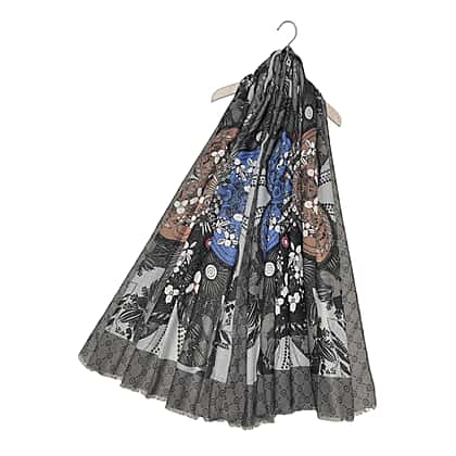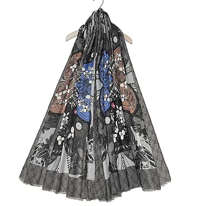 Lightweight Soft Floral Pattren Scarf - Black & Blue