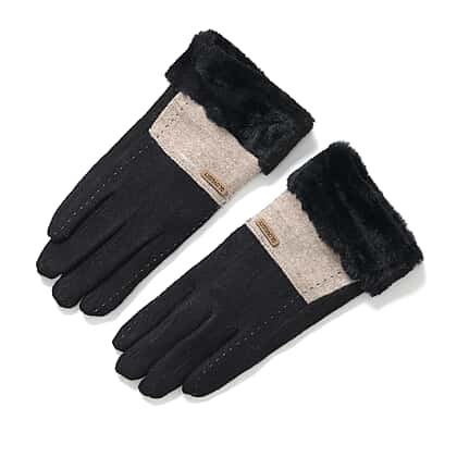 Styled By 70 % Cashmere Wool Gloves with touchscreen access (One Size) - Black