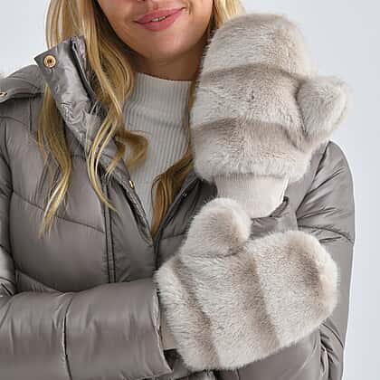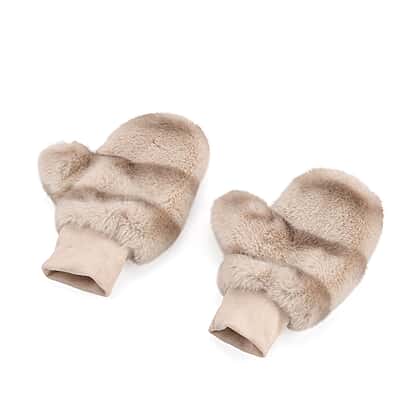 Styled By Super Cozy Faux Fur Mittens (24 x 12 cm, One Size) - Beige