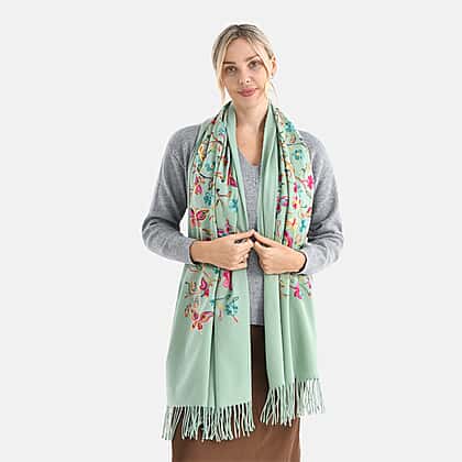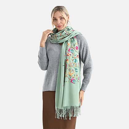 Super Soft Oversized Floral Embroidery Scarf (185 x 70cm) - Green