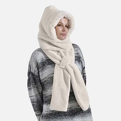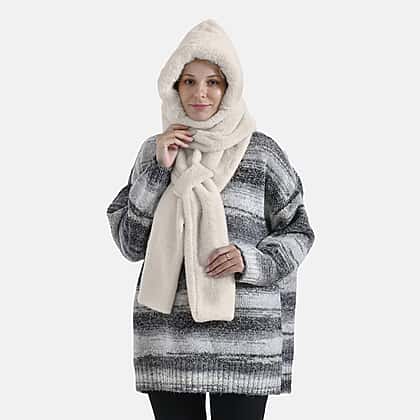 Embrace winter in comfort and style with this 2 in 1 Plush Hooded Scarf, a blend of practicality and elegance. 3 in 1 style, keep warm in all directions for your head and neck. The integrated hood protects against the cold, while the soft scarf wraps securely around your neck for a cosy fit. This lightweight yet warm accessory is made from 100% polyester, perfect for outdoor strolls or lounging. Its versatile design complements jackets, coats, or sweaters, enhancing your winter wardrobe.