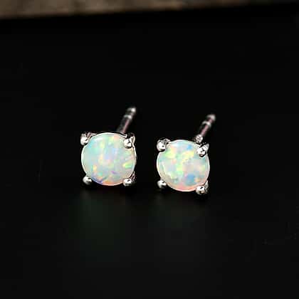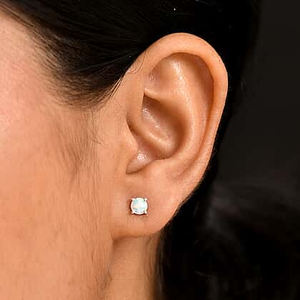 Synthetic Milky Opal Earring with Push Back in Sterling Silver