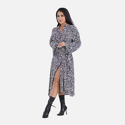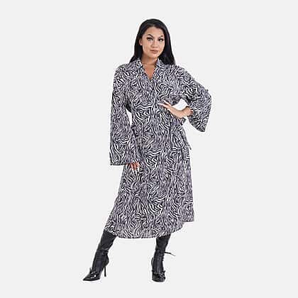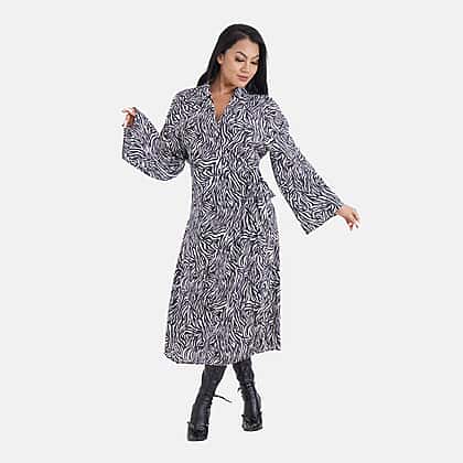 Get this stylish and unique Tamsy woven midi wrap dress for the new season's fun. It is made from soft printed fabric with a self-tie belt, which lets you cinch the waist or wear it loose. The v-neckline with collar design and wide sleeves gives that perfect look.