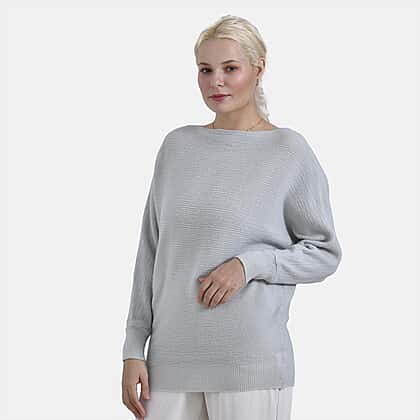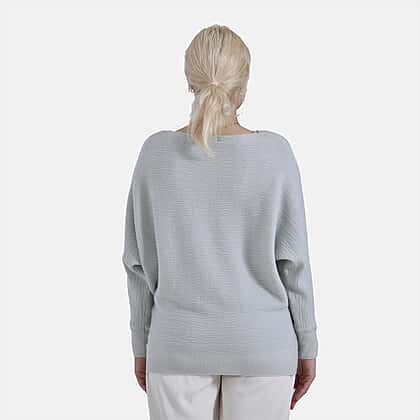 Tamsy Boat Neck Batwing Sleeve Jumper (One Size 8-18) - Light Grey