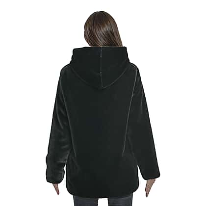 TAMSY Faux-Fur Long Sleeves Women's Coat - Black