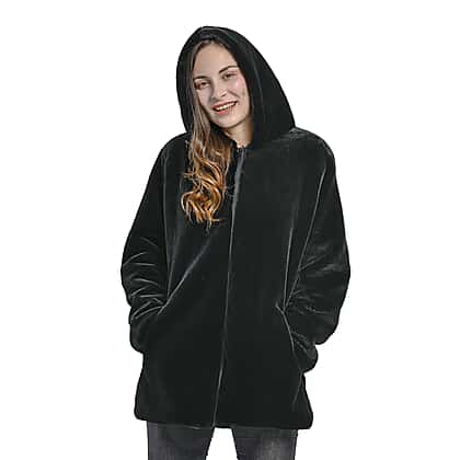 TAMSY Faux Fur Long Sleeved Coat - Black
