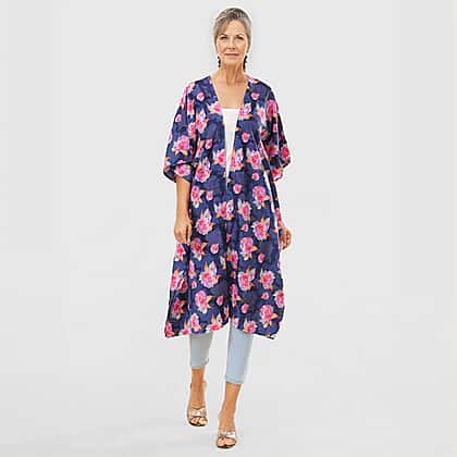 TAMSY Floral Pattern Kimono (One Size) - Blue and Multi