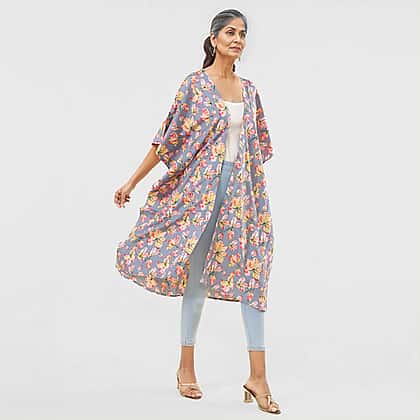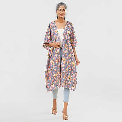 TAMSY Floral Pattern Kimono (One Size) - Blue and Multi