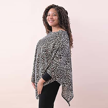 TAMSY Leopard Printed Velvet Women's Poncho - White and Brown