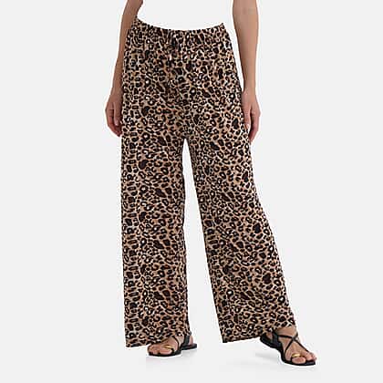 Unleash your wild side with the Tamsy Brown Leopard Print Wide-Leg Trousers—a bold yet comfortable staple for easy, standout style. Crafted from 100% polyester, these trousers are lightweight, soft, and ideal for laid-back days or weekend outings. The wide-leg cut adds relaxed movement, while the elasticated waistband and adjustable drawstring provide a secure, flexible fit. Covered in a striking leopard print, they’re effortlessly eye-catching and easy to pair with simple tops and sandals. Whether you're lounging at home or heading out with friends, these trousers deliver comfort and personality in one stylish package.