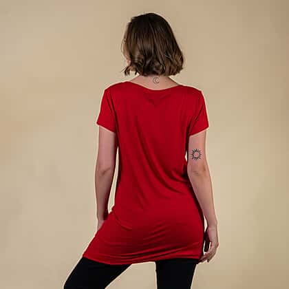 This minimalistic red sleep shirt for women from the collection of Tamsy will keep you cosy and comfortable throughout the day. Made from lightweight and breathable fabric to keep relaxed around the clock. Designed with a round neckline and short-sleeve, this women's shirt is perfect for everyday wear. Style this solid pattern sleep shirt with leggings for a laid-back look.