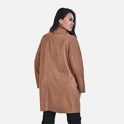 This Tamsy suedette knitted duster coat is a smart and stylish addition to your coat collection. It has a single front button, full sleeves and collared neck for that perfect look.