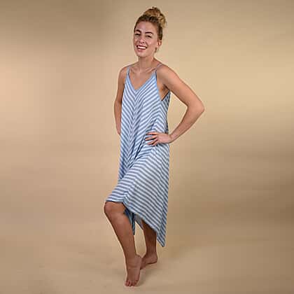 TAMSY Viscose Asymmetrical Hem Herringbone Stripe Dress One Size - Denim Blue