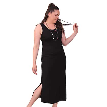 No wardrobe is complete without well-rounded basics, and this sleeveless women's side slit dress from Tamsy is a perfect everyday option. Made from viscose blended fabric to deliver enhanced comfort to keep you at ease around the clock. This dress is designed with a round neck and side slit to make it excellent casual wear.