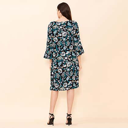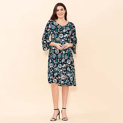 TAMSY Floral Pattern Women's Midi Dress - Black, Teal and Multi