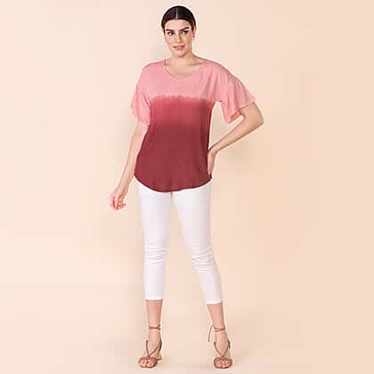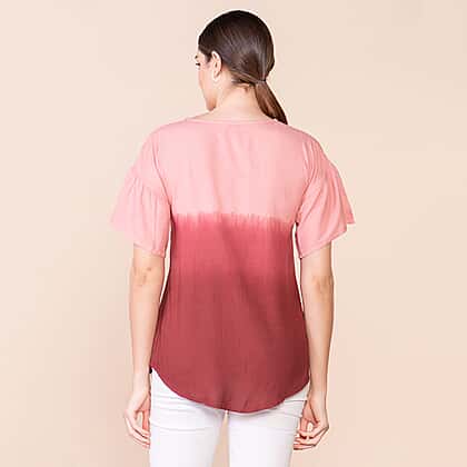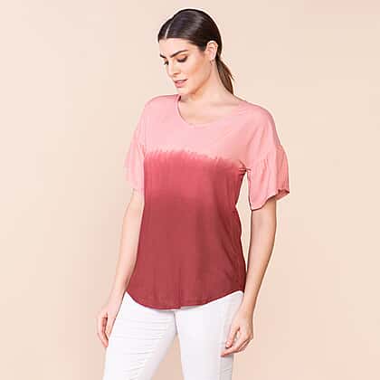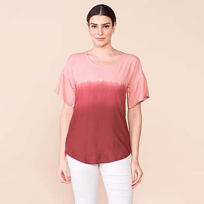 TAMSY Viscose Ombre Pattern Short Sleeve Top - Red