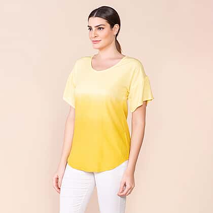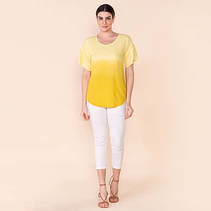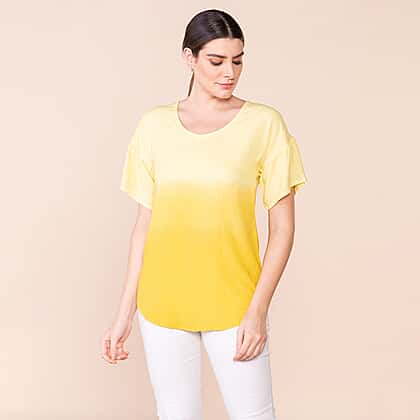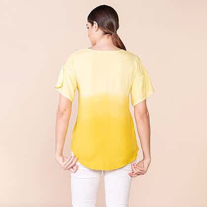 Your warm-weather look will be as charming as comfy when you wear this V-neck neck top from Tamsy. Made from super-soft, lightweight and breathable viscose fabric to ensure that you stay comfortable around the clock. The timeless omber print in yellow colour gives an eye-catching appeal to this women's top.
