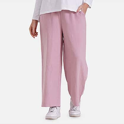 Soft, feminine, and comfortable—these pink Tamsy wide leg lounge trousers are made to keep you feeling great. Designed in airy polyester, they offer a smooth, flowing fit with enough structure to flatter every shape. The elasticated waistband allows for quick, fuss-free dressing, and the side pockets make them just as functional as they are pretty. Whether you're winding down at home or stepping out for errands, this piece adds comfort and personality to your casual wardrobe.