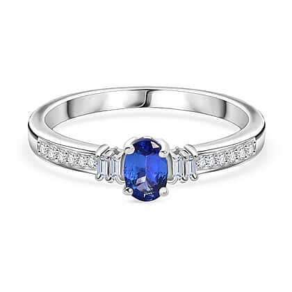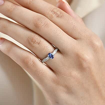 Experience the brilliance of moissanite with this D'Joy ring, featuring a stunning central tanzanite stone, flanked by brilliant moissanite accents on each side. this design combines the rich hue of tanzanite with the sparkling brilliance of moissanite, creating a dazzling contrast. crafted in premium platinum overlay on 925 sterling silver, the ring ensures lasting durability and luxurious appeal. Perfect for both everyday wear and special occasions, this ring adds a sophisticated touch to any collection.