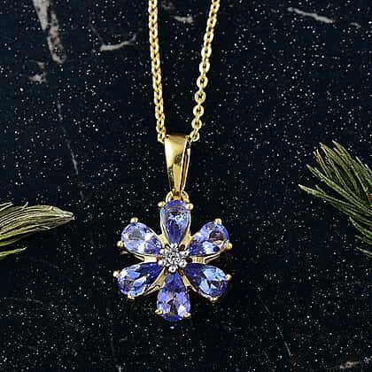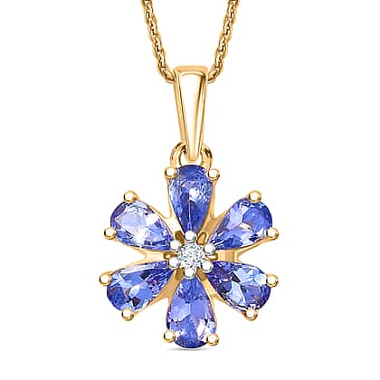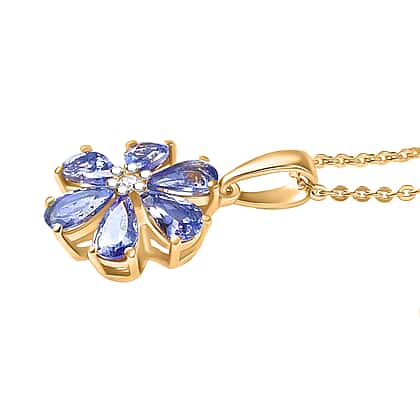 D'Joy Tanzanite & White Zircon Pendant with Chain (Size 20) in 18K Yellow Gold Plated Sterling 1.20 Ct.