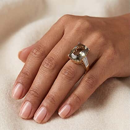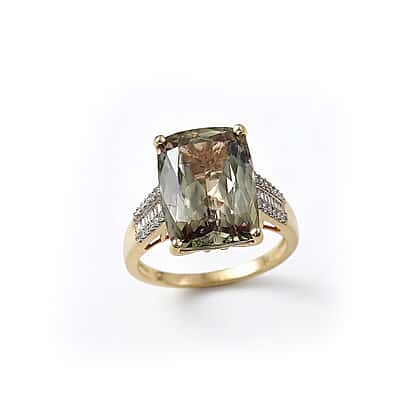 The Heirloom Collection RHAPSODY 10 Ct. AAAA Natural Turkizite, Natural Diamond Ring in 18K Yellow Gold (VS-E-F)