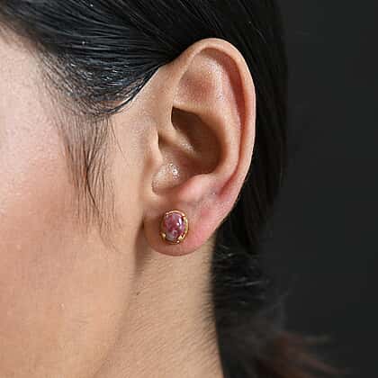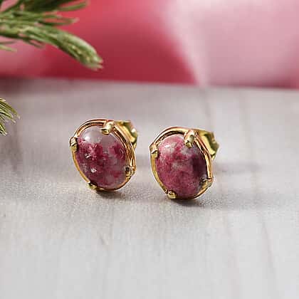 If you are looking for pieces that are eye-catching and wearable in equal measure, then these natural thulite stud earrings make for a fantastic option. It features oval-cut thulite stone exuding a reddish-pink hue. The cabochon-cut of these studs further helps to amplify the appeal of the pretty hue of the gemstone. Crafted in gold plated sterling silver, it features minimalistic claw prongs that hold the gemstones in place. Thulite stone is believed to possess metaphysical and healing properties which can help the wearer feel more balanced.