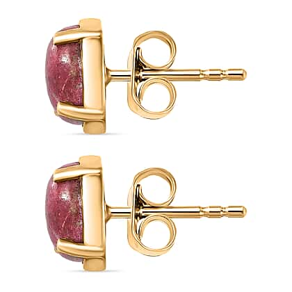 Natural Thulite Earring with Push Back in Yellow Gold Plated Sterling Silver